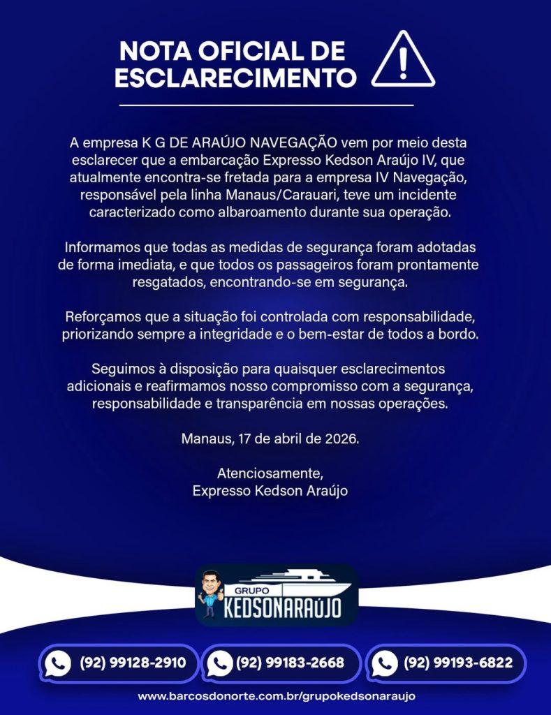 Após o ocorrido, a empresa responsável pela lancha divulgou uma nota oficial tranquilizando familiares e informando que: "Todos os passageiros estão em segurança e receberam assistência imediata".