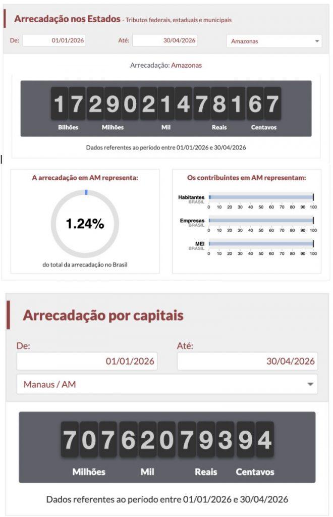 O contribuinte do Amazonas já desembolsou R$ 17,29 bilhões em impostos nos primeiros quatro meses de 2026, segundo dados do Associação Comercial de São Paulo. O valor representa um aumento de aproximadamente 3% em relação ao mesmo período de 2025, quando foram arrecadados R$ 16,78 bilhões — crescimento que ocorre mesmo sem considerar os efeitos da inflação.