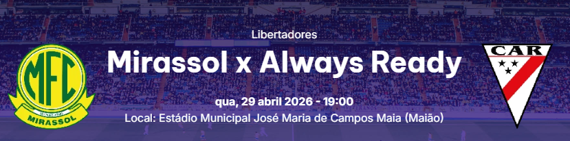 Três representantes entram em campo hoje: Flamengo, Palmeiras e Mirassol. Cada um vive um cenário diferente, mas todos com chances reais de dar um passo importante rumo ao mata-mata.