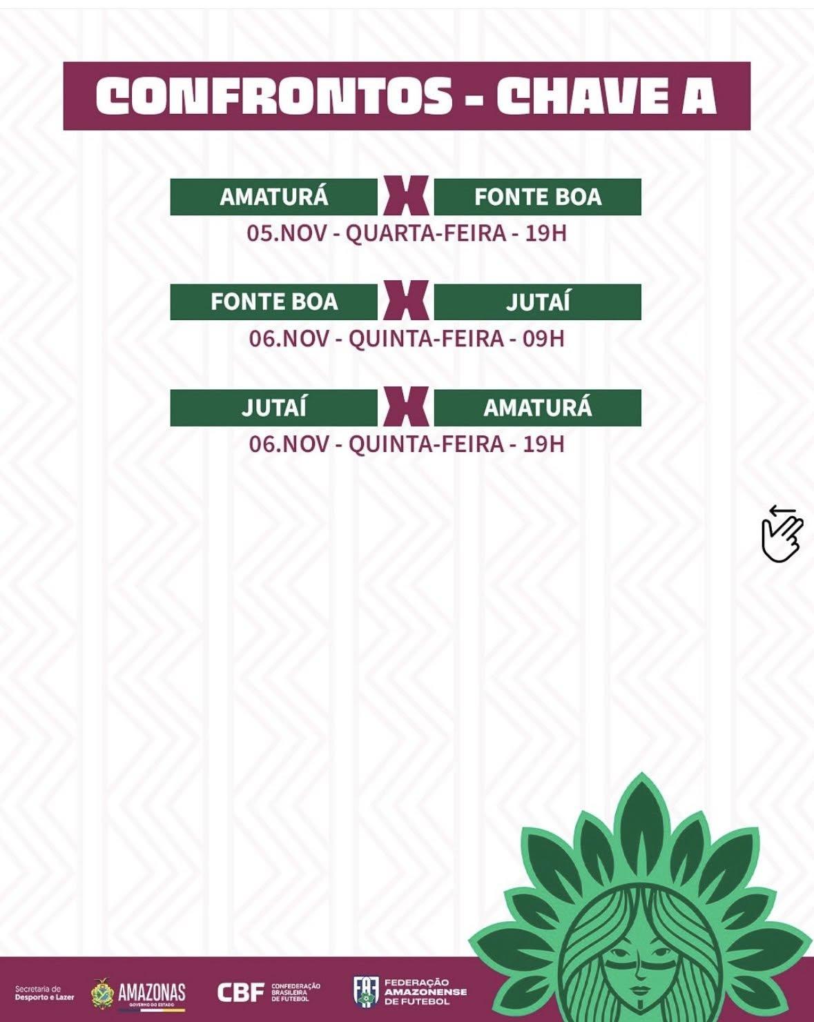 fonte Boa faz sua estreia logo mais as 19h, pela chave "A", jogando em Amaturá contra as anfitriãs. Amanhã Fonte Boa enfrenta Jutaí às 9h da manhã, partida que poderá carimbar a classificação das meninas fonteboenses, caso vença Amaturá hoje.