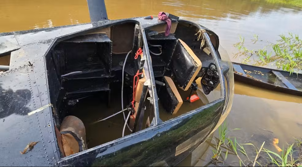 De acordo com o delegado Célio Lima, titular da 70ª DIP de Juruá, a equipe foi acionada após moradores relatarem que haviam visto uma aeronave parcialmente submersa próxima a um lago. As diligências foram iniciadas, com apoio da Guarda Municipal, e no local foi encontrado um helicóptero de cor preta, modificado para o transporte de entorpecentes.